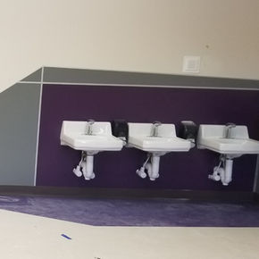 A school wanted to place these "Way Finders" at the enterance to each hallway. The contractor gave us drawings of what was wanted, and we drafted, cut, painted and installed these. They were so much fun to work on and really brightened up the school hallways!